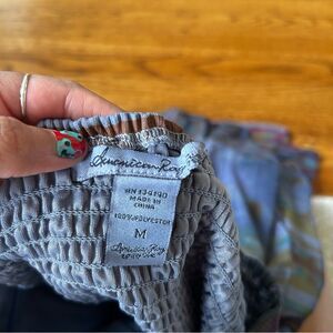 strapless dress by American Rag. Features a vibrant blue and brown geometric design. Ideal for versatile styling.