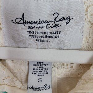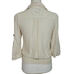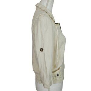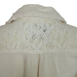American Rag Sz Small Cream Shacket Lace Detail 3/4 Roll Tab Sleeves Full Zip