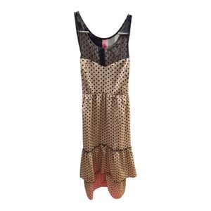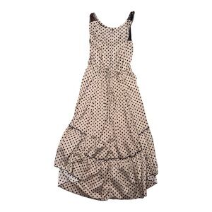 This stylish tan sundress by American Rag is perfect for cocktail occasions, featuring a tiered high-low hemline that adds a touch of elegance. The sleeveless design with spaghetti straps ensures a comfortable and chic fit, making it ideal for warm weather gatherings.