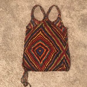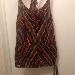 American Rag multi color tank top with drag string bottom. Racer back. Braided double straps. Cute summer top to pair with jeans, shorts or a skirt. Size L. Good condition.