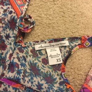 beautifully patterned American Rag tank. Ties in the upper back. Size XS. 100% polyester