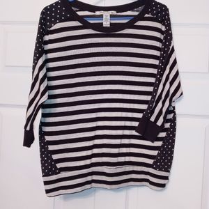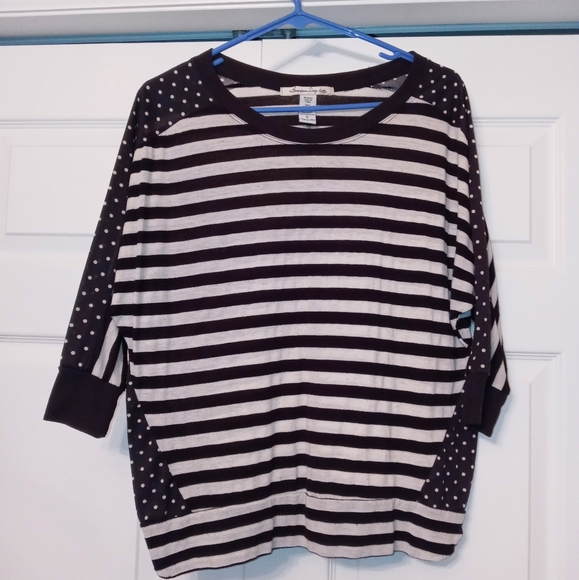 Adorable mid sleeve top, stripes & polka dots, a t-shirt doesn't get classier than this! If it would fit I would rock it, only worn and washed twice, no flaws.