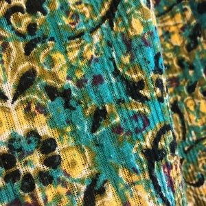 Size XS. In good condition. The only flaw I can find is some discoloration on the inside of the collar/neckline.