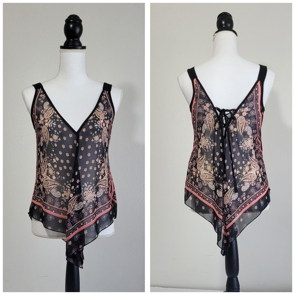 American Rag sheer handkerchief style top with lace up back. Like new