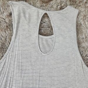 American Rag Tunic Tank with Long Side Tails White with Gray Stripes