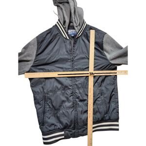 American Rag Varsity Bomber Jacket Hoodie Mens Medium Black Gray Full Zip Casual Streetwear