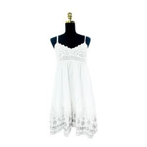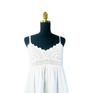 Embrace effortless summer style with this boho crochet dress from American Rag. Crafted from 100% cotton, this lightweight white dress features a beautifully detailed crochet bodice, adjustable spaghetti straps, and floral embroidery along the scalloped hem. With a flowy, breathable fit, this piece is perfect for beach days, festivals, or brunching in the sun.