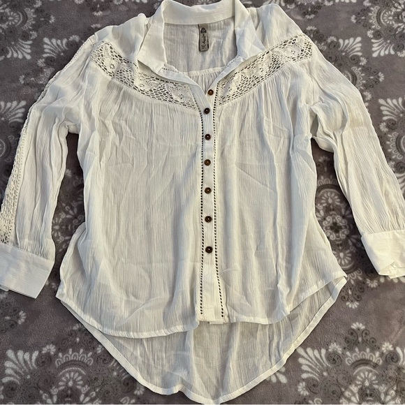 American Rag White Collared Sheer Button Up