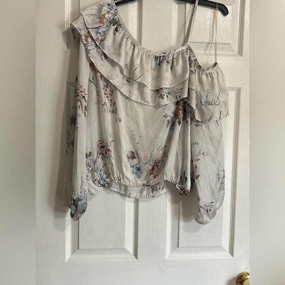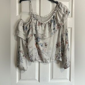 American Rag White Floral One-Shoulder Ruffle Blouse