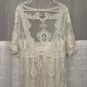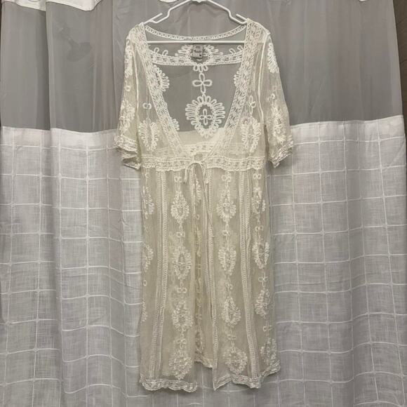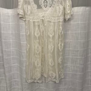 white lace robe, sheer lace cover up, dreamy romantic layering piece, coquette white lace, feminine boudoir robe festival