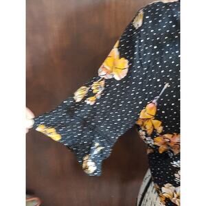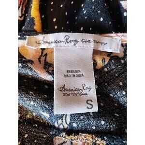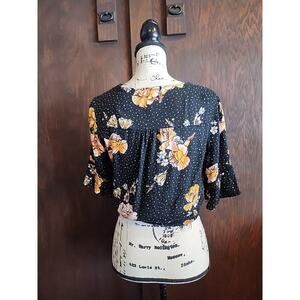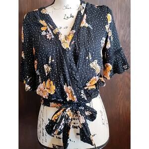 American Rag Women's Small Black Blouse Floral Wrap Tie Rayon crop