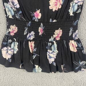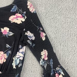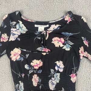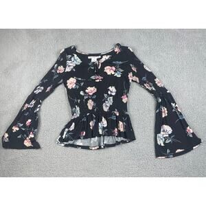 American Rag Women's Small Black Flower Rayon Spandex Long Sleeve Blouse