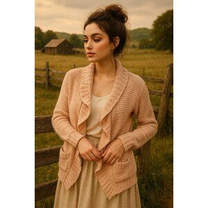 American Rag XS Entry Cie Chunky Cable Knit Drape Open Front Sweater Cardigan