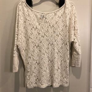 American Rag 3/4 sleeve top with shear lace back. Cream color.