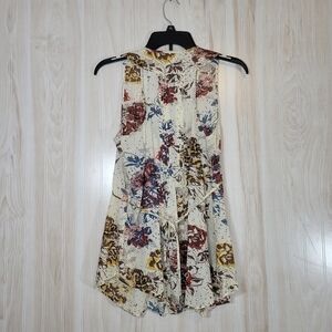 American Rag cie Cream Floral Button-Down Tunic Top Sz Med