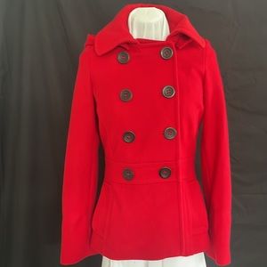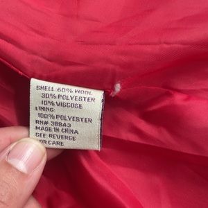 Little use. Great condition. Removable hood. Shell is 60% wool, 30% polyester, 10% viscose. Fully lined, 100% polyester.