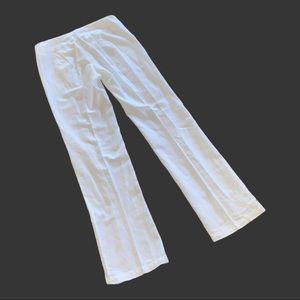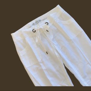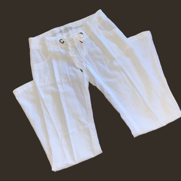 The pants are beautiful and clean looking. White linen/cotton blend.