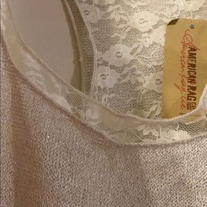 NWT. American Rag tank top. Cream color with sparkle and pretty lace detail. Purchased from Macy’s.