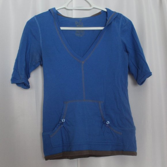 American Rag v-neck top with front pockets and hood. Sleeves are above elbow. Great condition. No rips, stains or tears. From a smoke free and pet free home.