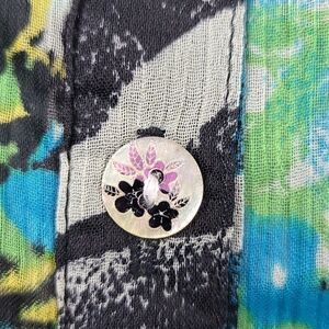 Adorable floral pearl buttons down the front and a tie back