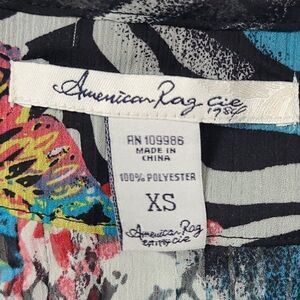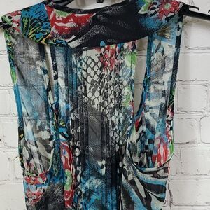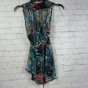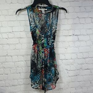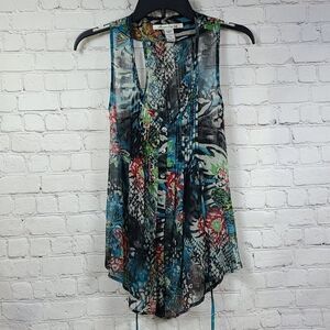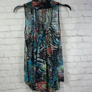 American Rag Mixed Animal Print Sheer Chiffon Pleated Top XS Sleeveless Blouse