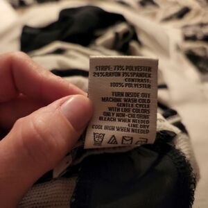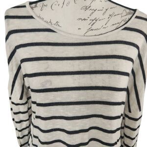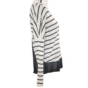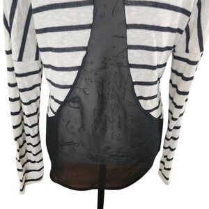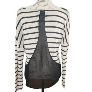 American Rag Women's Size Large Black White Striped Back Sheer Panel Top