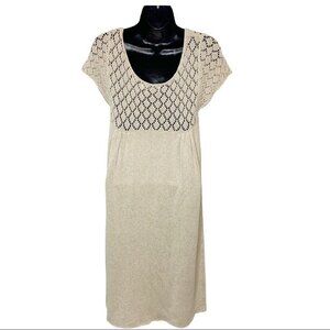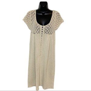 American Retro Crochet Knit Babydoll Dress Linen Cottagecore Sz M/L