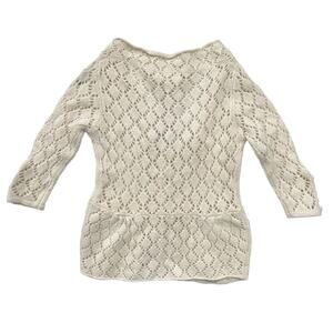 American Retro Paris Girl Size 1 Cardigan Sweater Open Knit Cream Cashmere Blend