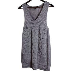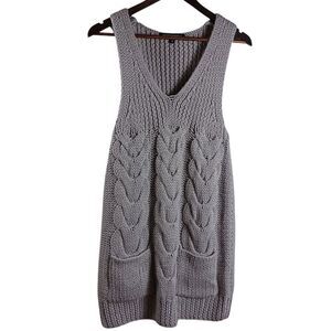 American Retro Women’s Sz 0 Gray Cable Knit Nordic Sweater Dress Wool Blend Mini