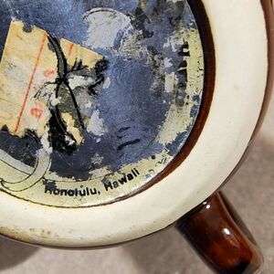 This American Samoa Ceramic Coffee Cup Mug was made in Honolulu, Hawaii and is the perfect addition to your collection of dinnerware and serveware. The circumstance measures approx 11 inches and it is approx 4 inches tall. Crafted from high-quality ceramic and porcelain, this mug is sturdy, durable and has never been used. It features a beautiful brown color and can be used to enjoy both hot and cold beverages. The mug is perfect for collectors and those who appreciate the unique beauty of American Samoa. It comes with a coffee mug and is ideal for use in the kitchen and home. This collectible mug is a must-have for anyone who loves to collect unique and beautiful mugs.