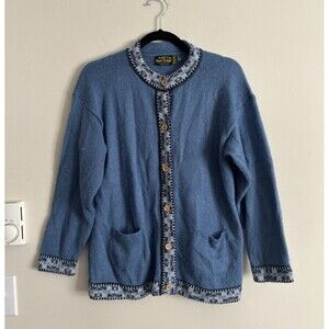 American South Side Alpaca Wool Button Front Cardigan Pockets Hippie Boho