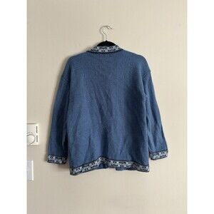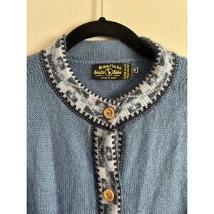 VTG American South Side button front cardigan. This lightweight, cozy cardigan is made with a soft blend of wool and alpaca. Cardigan features wooden style buttons, front pockets, and a stylish trim. Casual, comfortable, coastal, boho, hippie vibes.