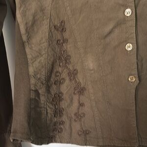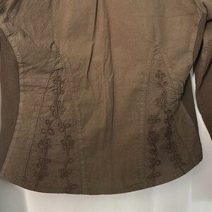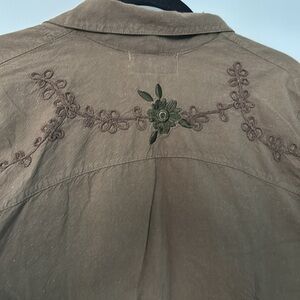 American South Side size Medium v-neck button down, western style embroidered top in brown.