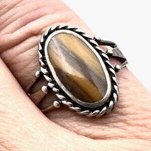 American Southwest Womens Ring Sterling Silver Tigers Eye Size 8.5