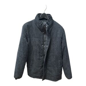 This American Stitch puffer jacket in black features a modern structured fit and a convenient zipper closure. The hip-length design offers a stylish silhouette, making it a perfect choice for layering during colder months.