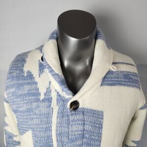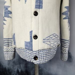 American Stitch Blue and White Aztec Print Quilted Ranch Sweater | Men's Small