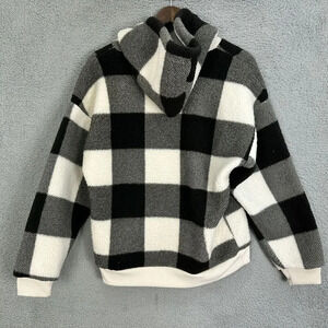 American Sweatshirt Women Small Black White Plaid Sherpa Fleece Hoodie Oversized