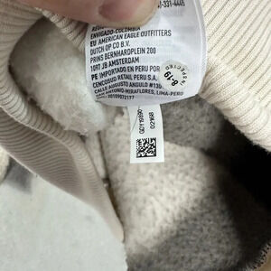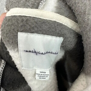 This American Eagle women's small sweatshirt is a chic blend of black and white buffalo plaid design. It's made of plush sherpa material, ensuring a cozy, warm feel. The hoodie adds a trendy touch to this casual wear.