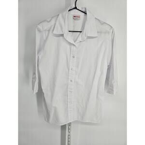 American Sweetheart Womens Sz S 3/4 Sleeve Button Up Dress Shirt Solid White