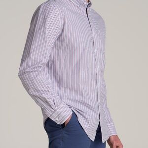 American Tall Soft-Wash Button-Up Shirt for Tall Men in Red and Blue Multi Strip