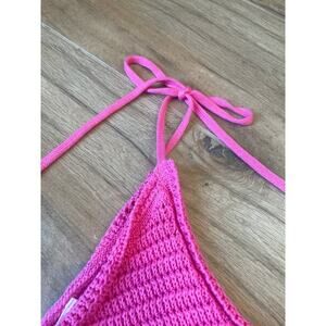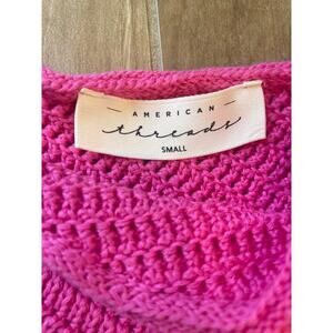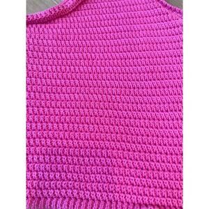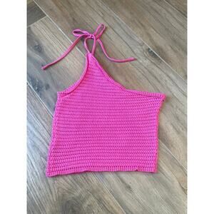 Vibrant pink assymmetrical American Threads crochet halter top. Size small. GUC.