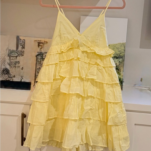 American Threads Yellow Ruffle Mini Dress