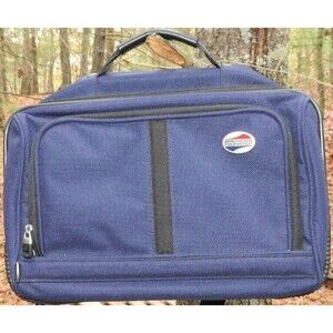 Durable American Tourister expandable carry-on bag with shoulder strap, plus a medium LeanTravel compression packing cube in grey, perfect for organized travel. Please see the photographs for the visual condition. Shipping is handled within 1-2 days! Your feedback and questions are always welcome. Thank you for your interest!