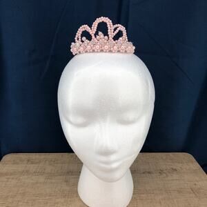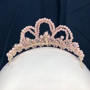 American VINTAGE 90's Handmade Mini Tiara Beaded with Pearl Pink Crystal Beads