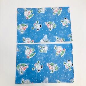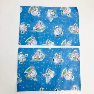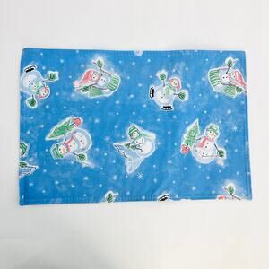 American VINTAGE Handmade Blue Snowman Frosty Vinyl Placemat Set of 2