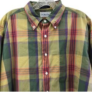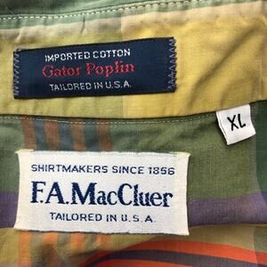 American VINTAGE XL F.A. MacCluer Men's Button Down Green Yellow Plaid Shirt