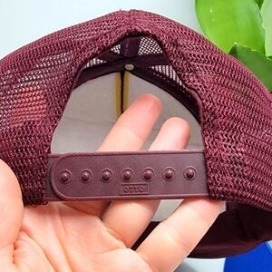 1, RA Swason burgundy trucker hat