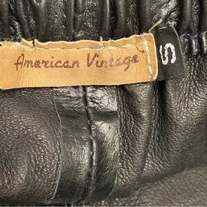 American Vintage Black Faux Leather Short with Red Floral Embroidery design on bottom of both sides. Elastic stretch waist.
