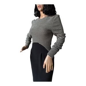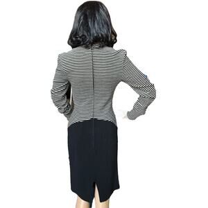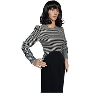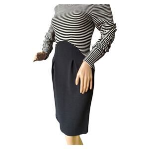 American Vintage Chetta B black white stripped wool fitted midi dress size small