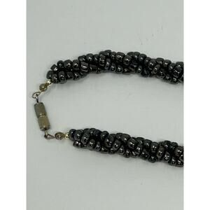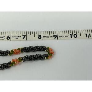 American Vintage Jewelry Necklace 70s Multistrand Hematite Twist Coral Flowers